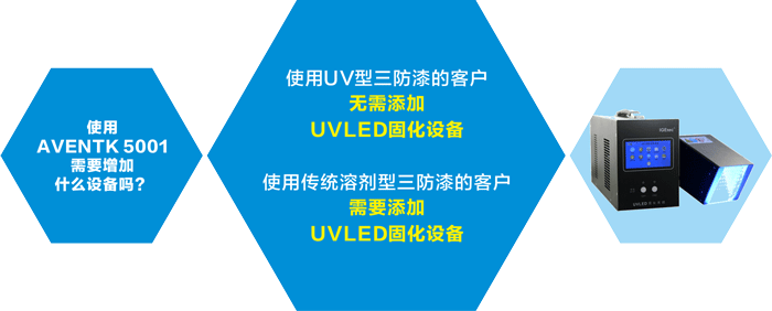 Aventk 5001 是用于電路板保護的、可以UV和濕氣雙重固化的保形涂層,又稱(chēng)三防漆(防潮、防鹽霧、防霉)。
