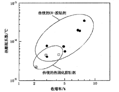4.采用陽(yáng)離子或混合型固化方法,環(huán)氧樹(shù)脂的陽(yáng)離子固化反應收縮率遠低于自由基反應產(chǎn)生的收縮。