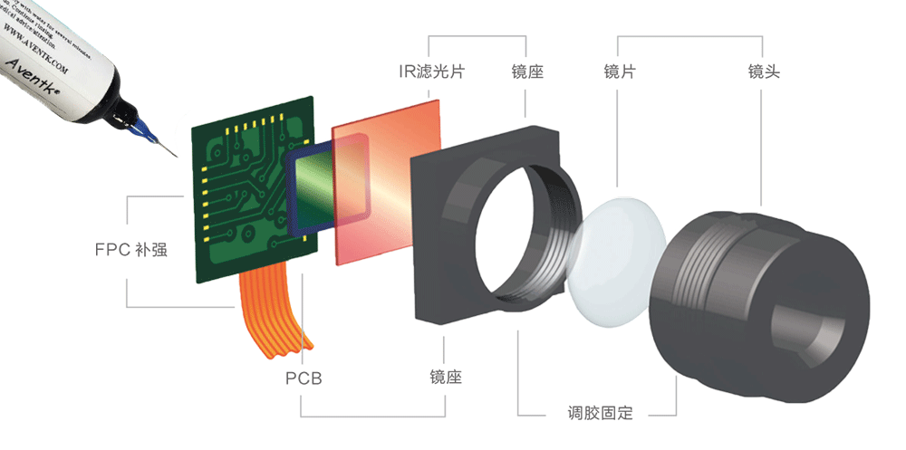 AVENTK 1015系列為可見(jiàn)光固化膠黏劑,對LCP有較佳附著(zhù)力。它對于不同塑料有良好的粘接力,用于柔韌的貼合,對于攝像頭模組粘接效果絕佳。AVENTK配合LED UV固化設備效果最佳。