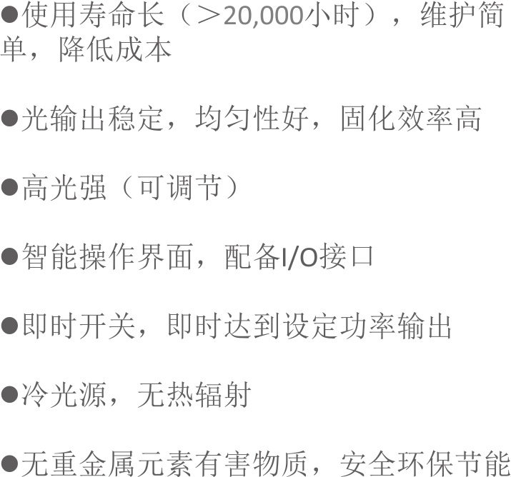 特點(diǎn):UV固化,可在2-5秒內完成固化;顏色透明;質(zhì)地較硬;防化學(xué)腐蝕和耐磨性非常好;可返修;100%固含量,節約成本;無(wú)揮發(fā),安全環(huán)保。
